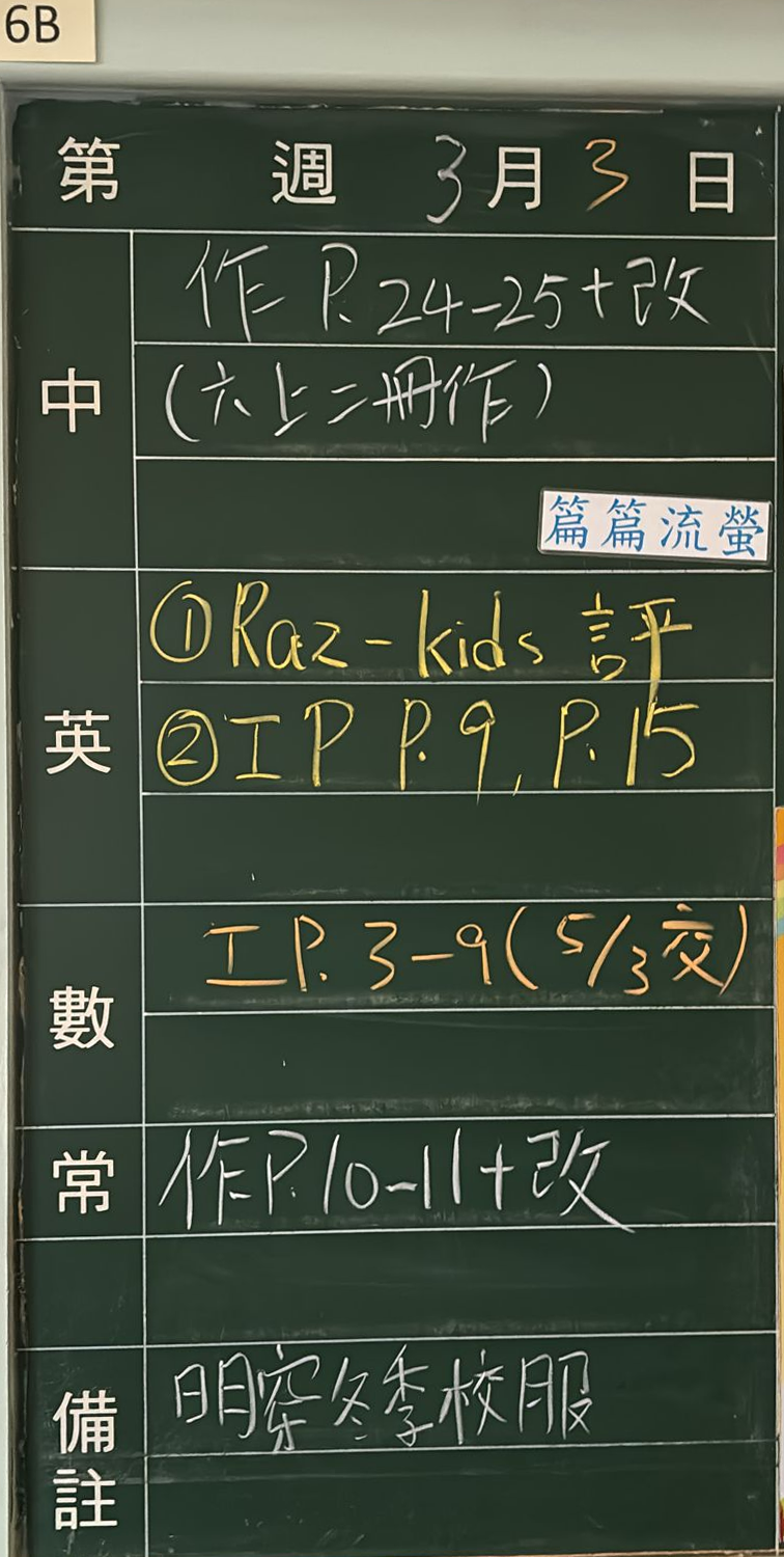 班別家課