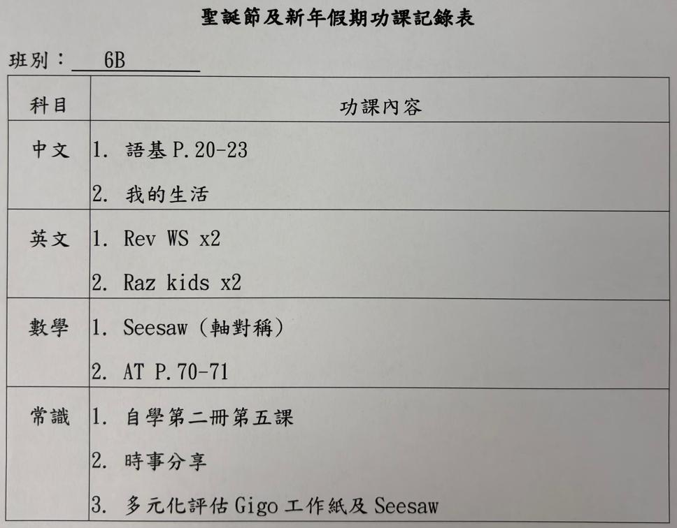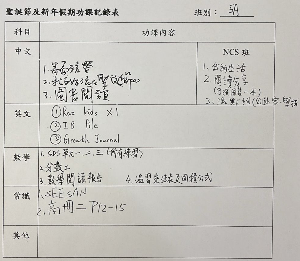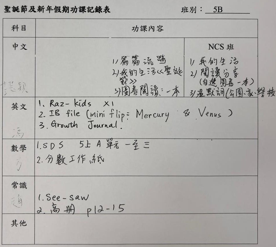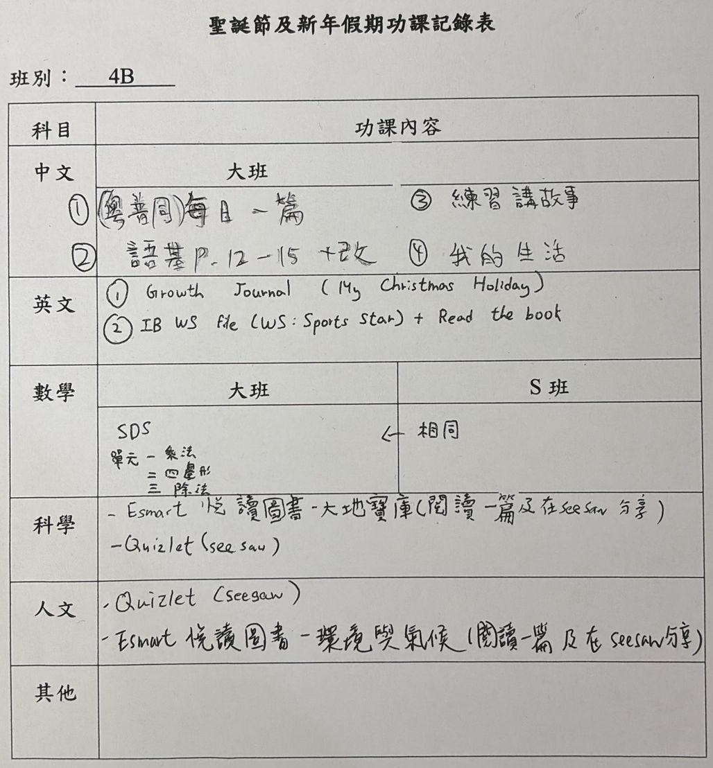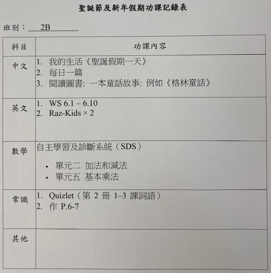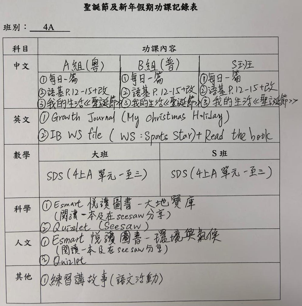 班別家課