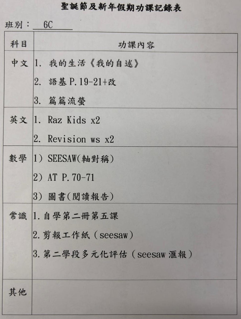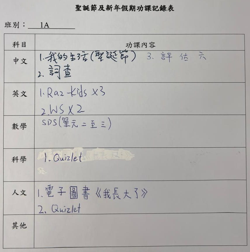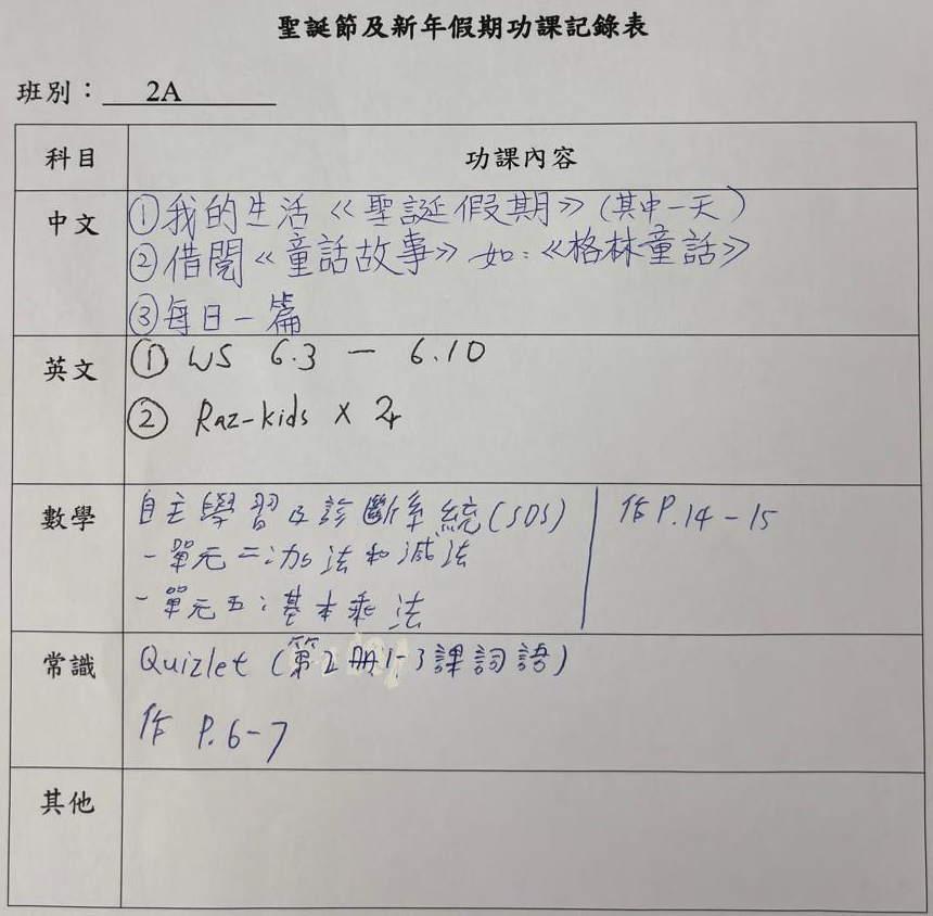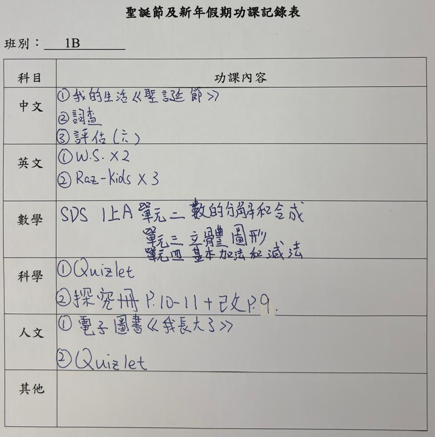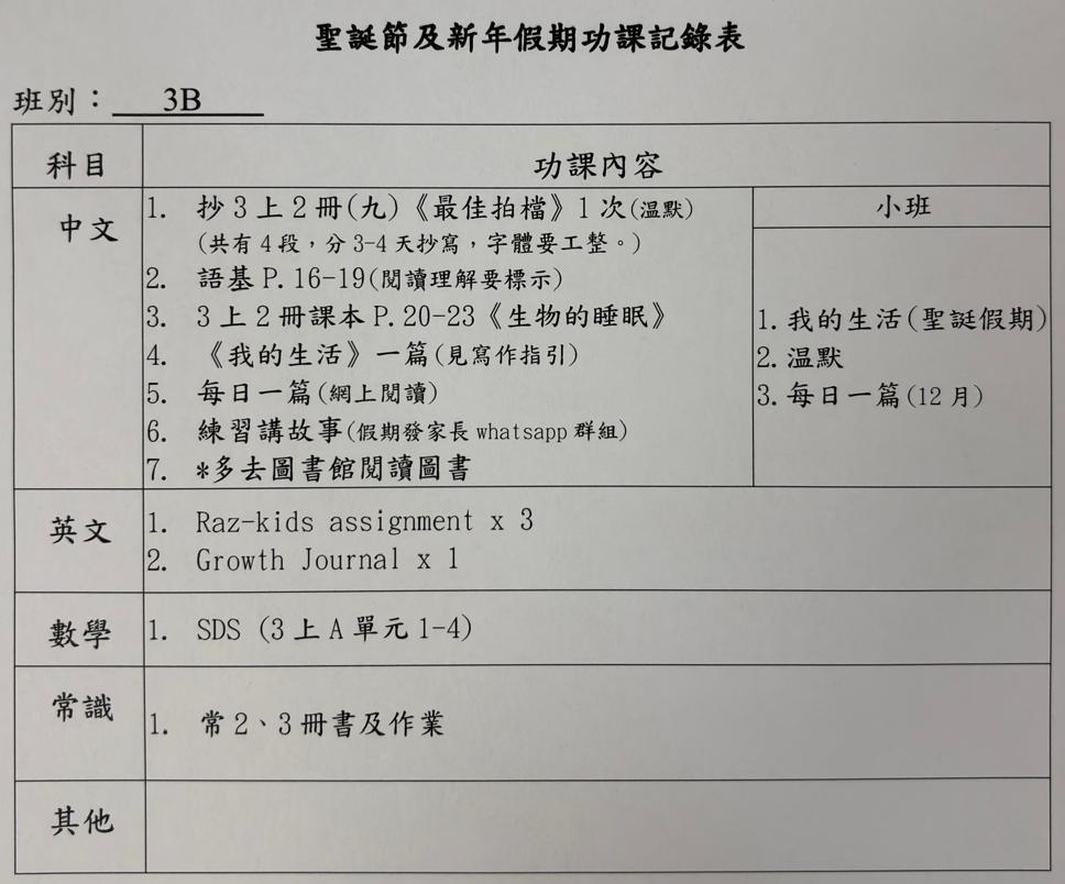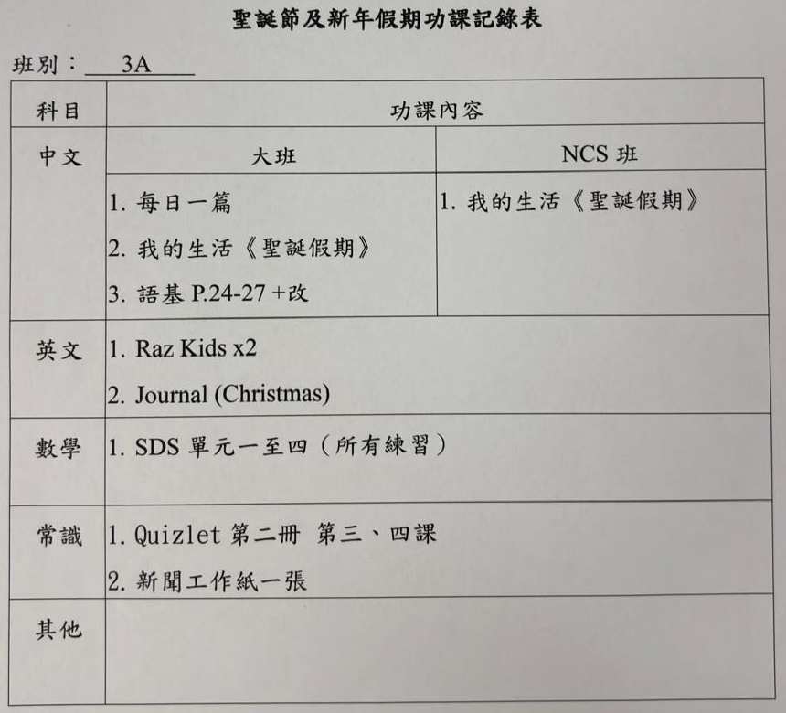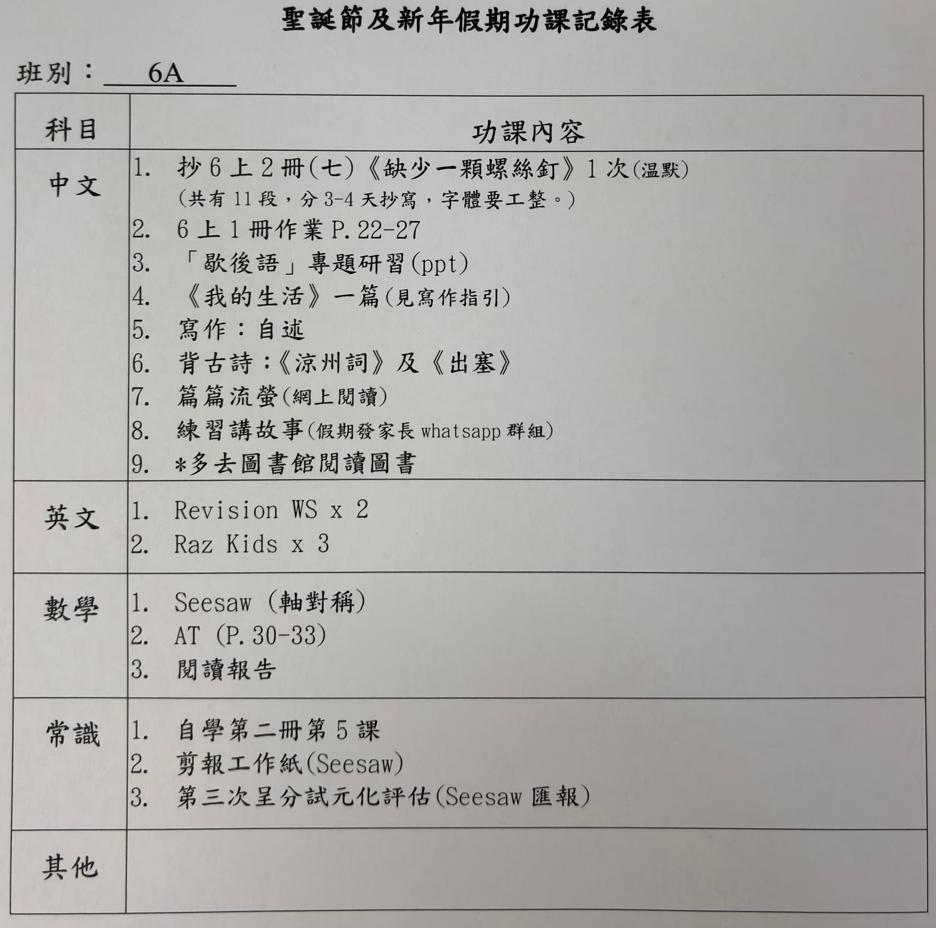 班別家課