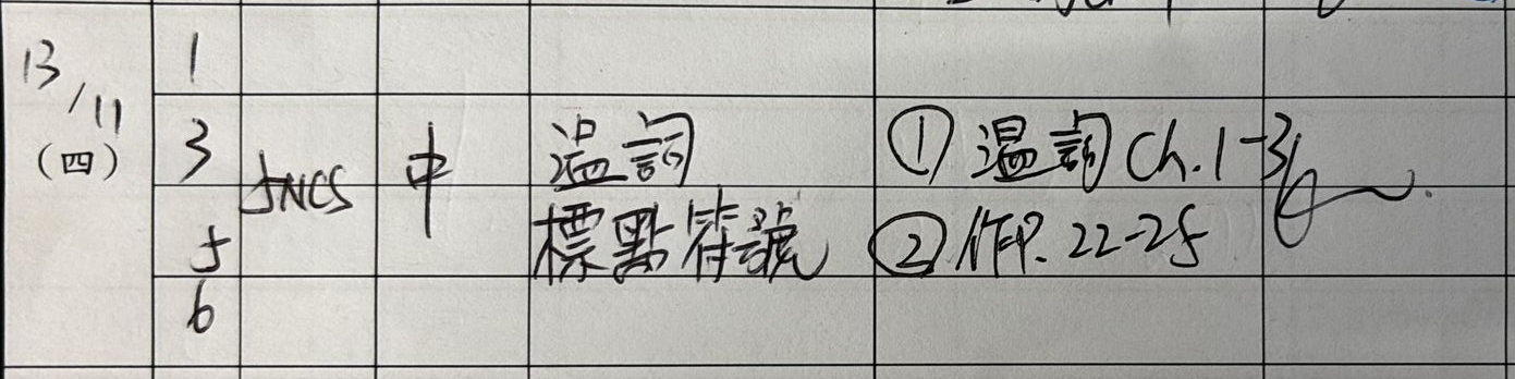 上課時間表