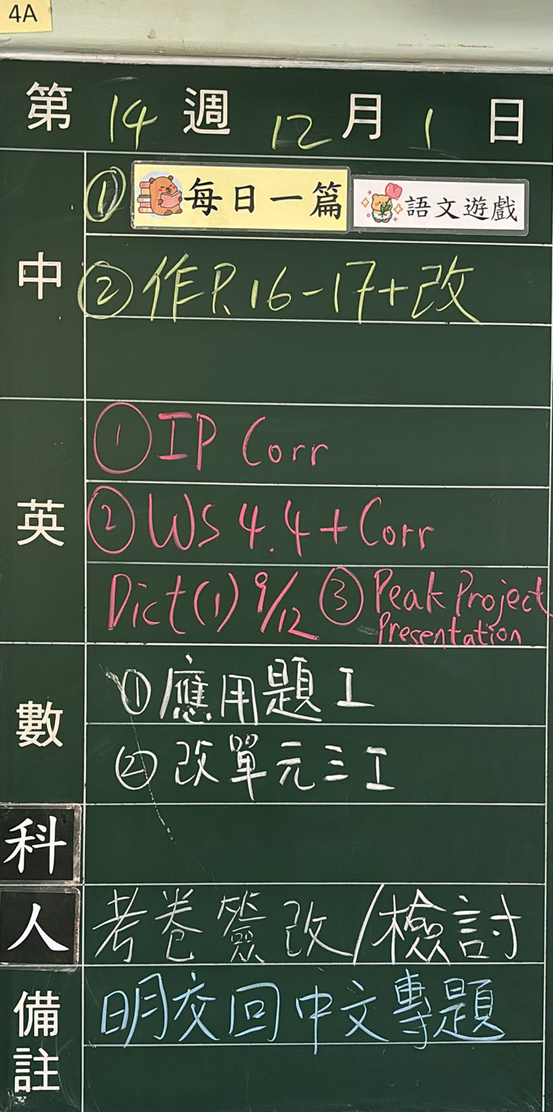 班別家課