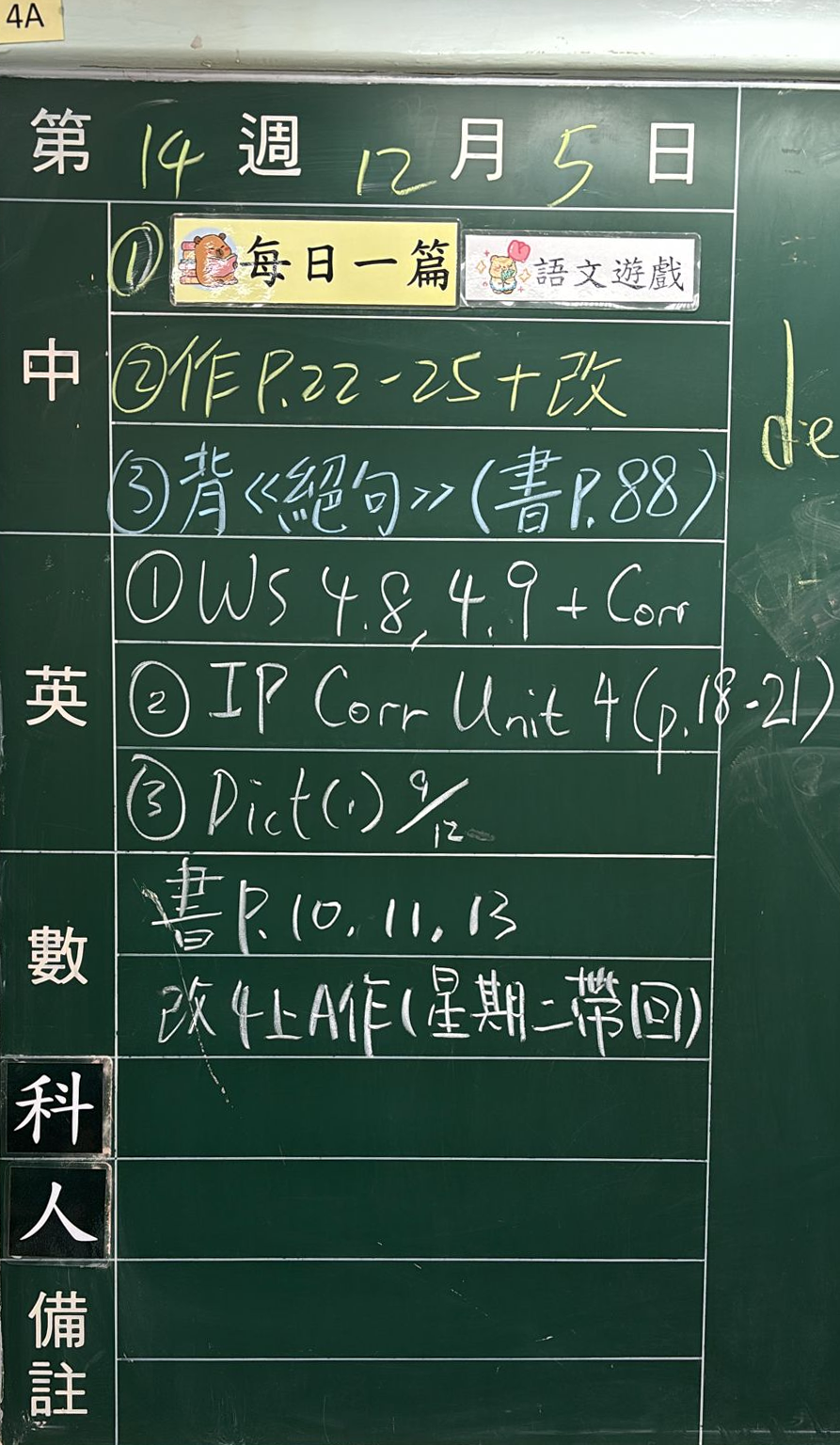 班別家課