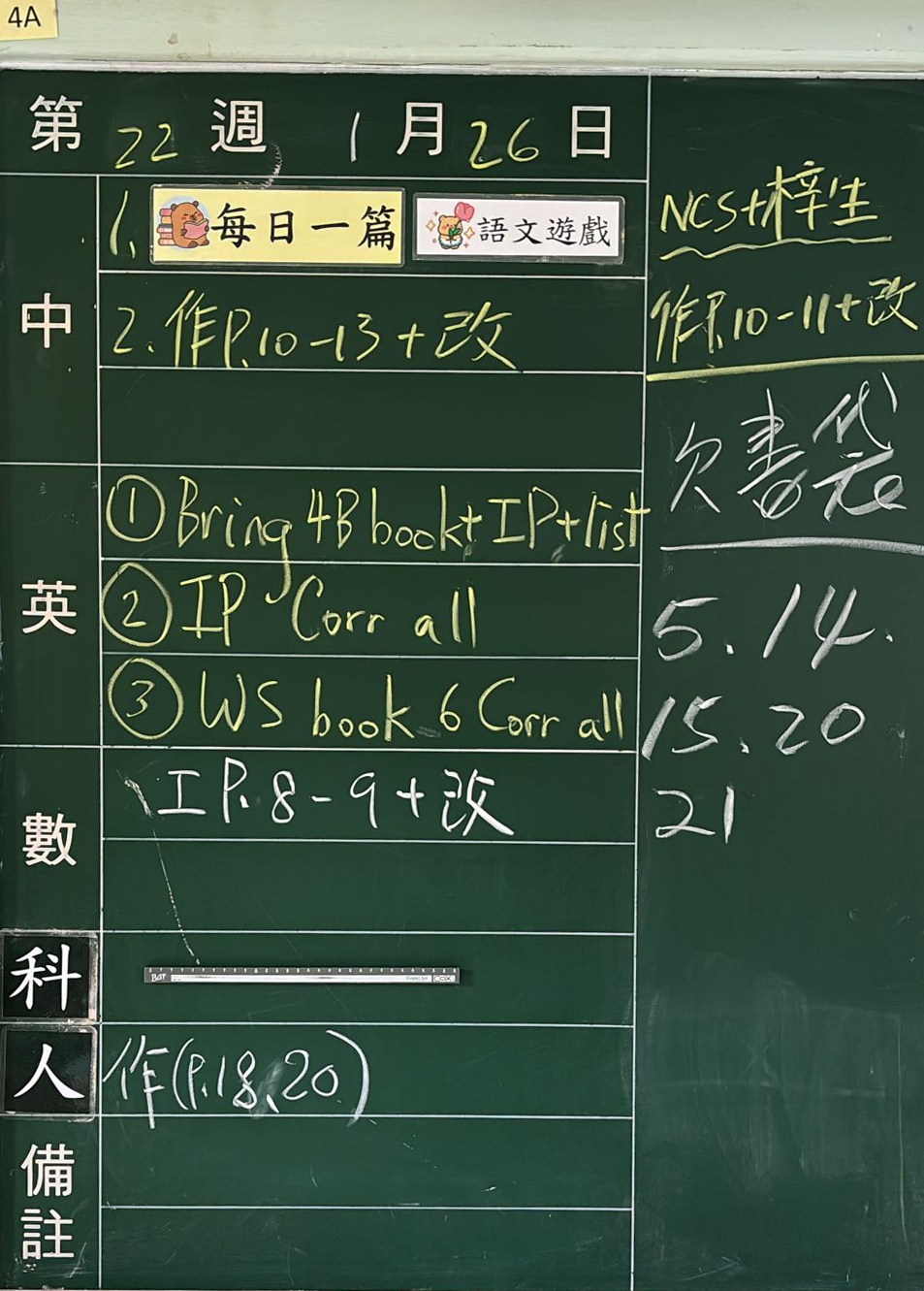 班別家課
