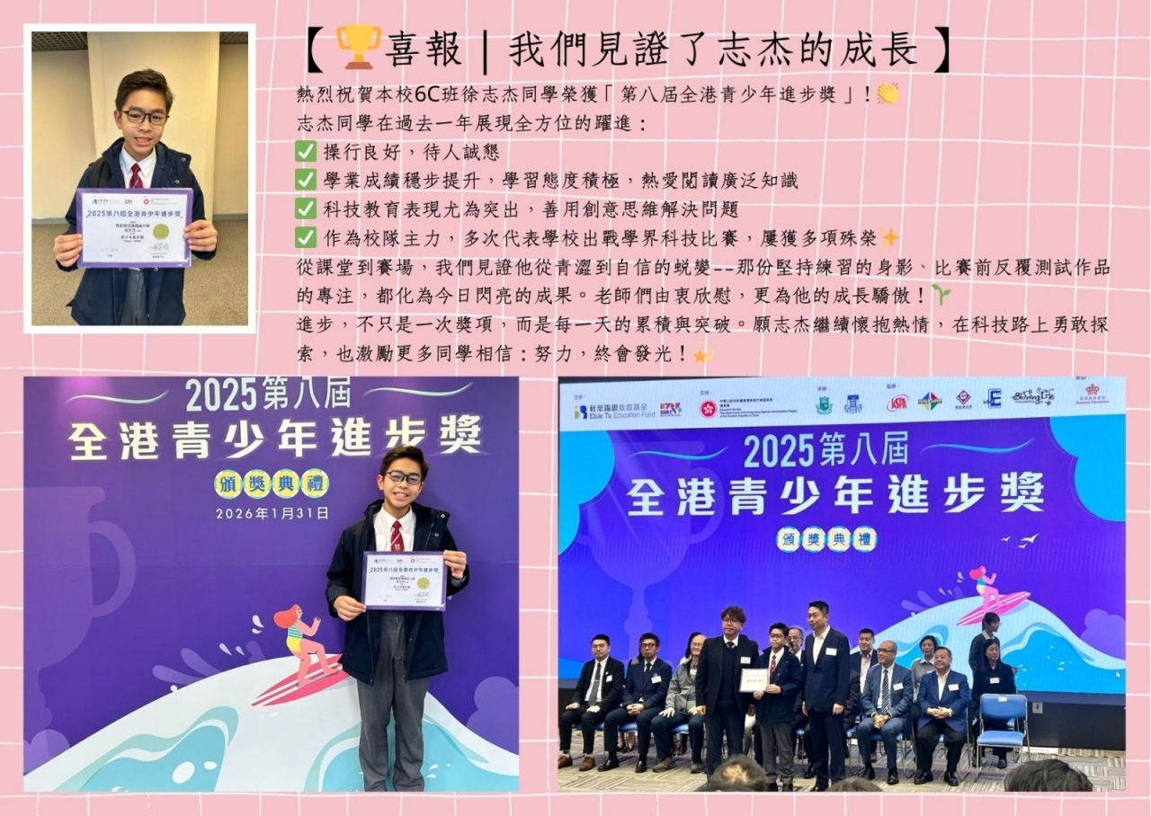 祝賀6C徐志杰榮獲【全港青少年進步獎